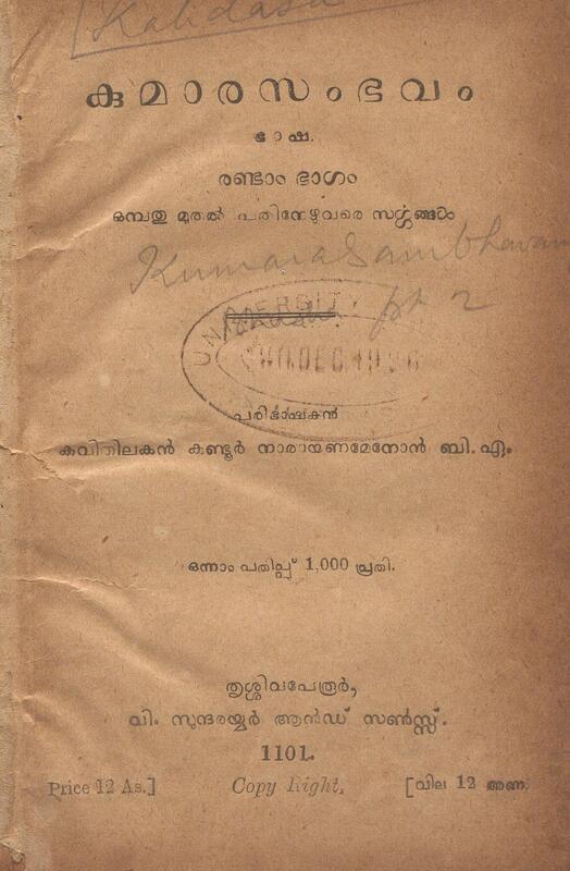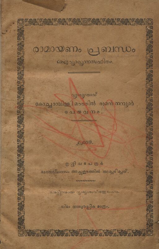 1881 - രാമാനുചരിതം - കലക്കത്ത് കുഞ്ചൻ നമ്പ്യാർ