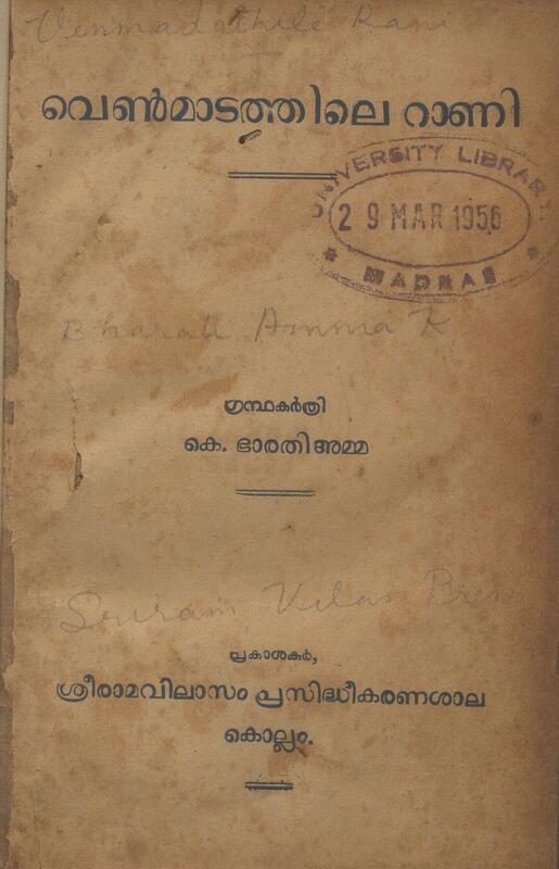 1951 - വെൺമാടത്തിലെ റാണി - കെ. ഭാരതി അമ്മ