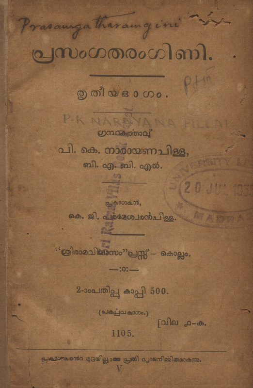 1930 - പ്രസംഗതരംഗിണി - തൃതീയഭാഗം - പി.കെ. നാരായണപിള്ള