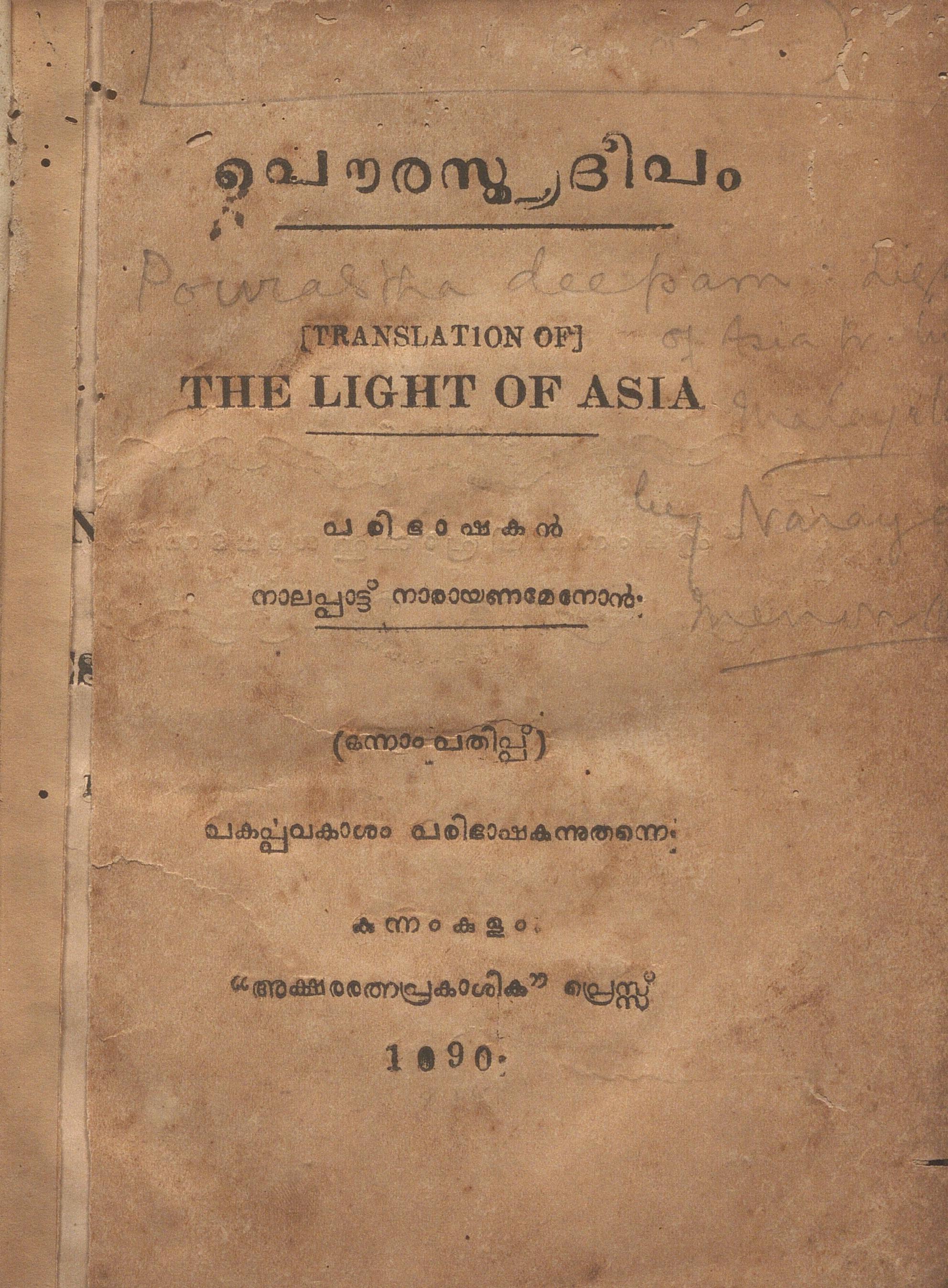1879-ൽ ലണ്ടനിൽ പ്രസിദ്ധീകരിച്ച, സർ എഡ്വിൻ ആർനോൾഡിൻ്റെ The Light of Asia എന്ന കൃതിക്ക് നാലപ്പാട്ട് നാരായണ മേനോൻ തയ്യാറാക്കിയ പരിഭാഷയാണ് ‘പൗരസ്ത്യദീപം’. വള്ളത്തോൾ നാരായണമേനോന് ആണ് ഈ പുസ്തകം സമർപ്പിച്ചിരിക്കുന്നത്. പലപ്പോഴും ബ്രാഹ്മണ പണ്ഡിതന്മാരും ക്രിസ്ത്യൻ പാതിരിമാരും വ്യാഖ്യാനിച്ച് വികലമാക്കിയ തഥാഗതൻ്റെ ധർമ്മോപദേശങ്ങളെ ശരിയായ രീതിയിൽ പാശ്ചാത്യലോകത്തിനു കാണിച്ചു കൊടുക്കാനാണ് എഡ്വിൻ ആർനോൾഡ് ശ്രമിക്കുന്നതെന്ന് ആമുഖത്തിൽ എഴുതിയിരിക്കുന്നു. മികച്ച മലയാള പരിഭാഷയിലൂടെ ബുദ്ധൻ്റെ സ്വന്തം നാട്ടിലെ സാധാരണ ജനസമൂഹത്തിന് ബൗദ്ധാശയങ്ങളെ ലളിതമായും സമഗ്രമായും പരിചയപ്പെടുത്തുക എന്ന ദൗത്യമാണ് നാലപ്പാട്ട് നാരായണമേനോൻ മുതിരുന്നത് എന്നും അദ്ദേഹം കൂട്ടിച്ചേർക്കുന്നു