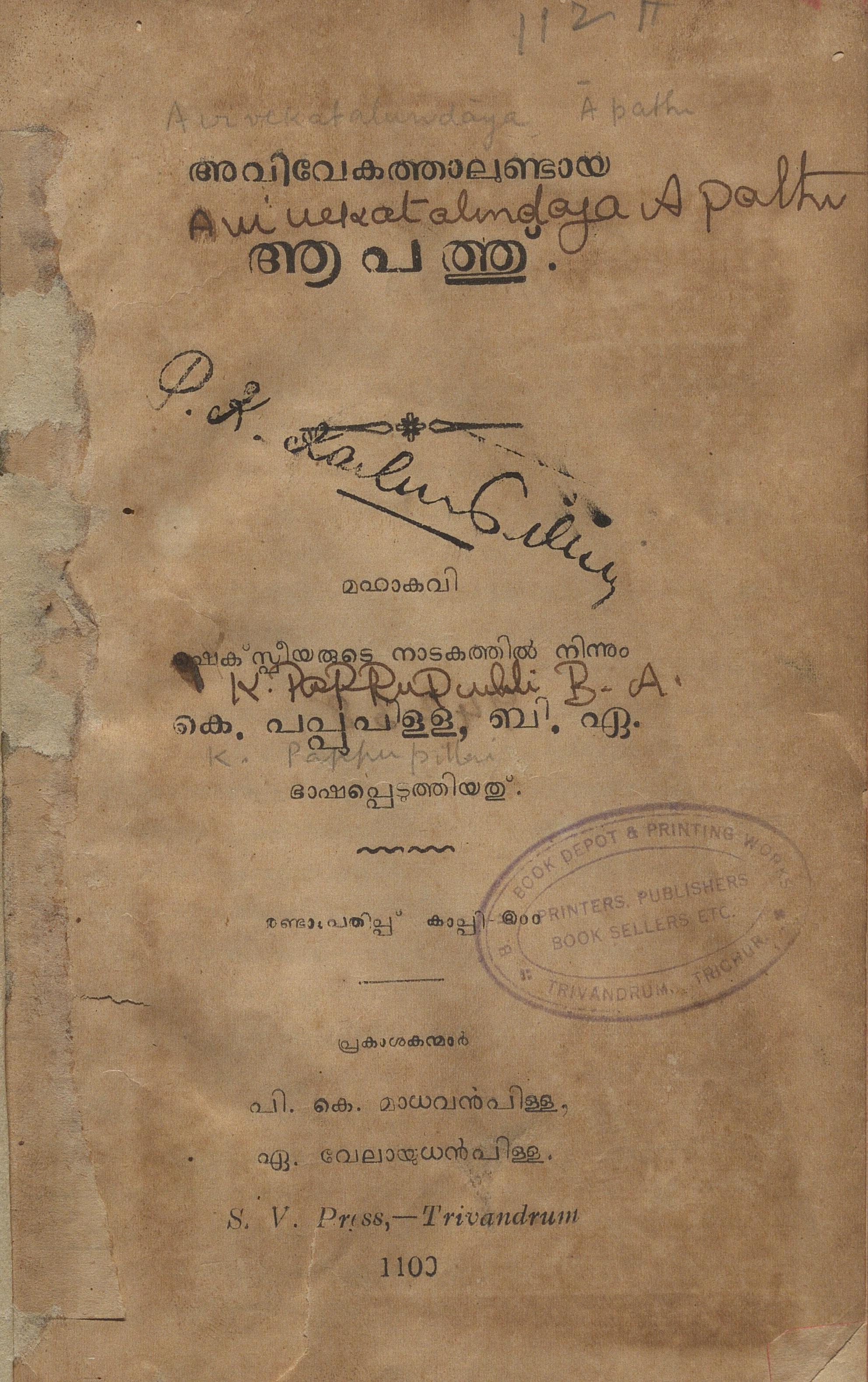 - അച്ചടി: S.V. Press, Trivandrum