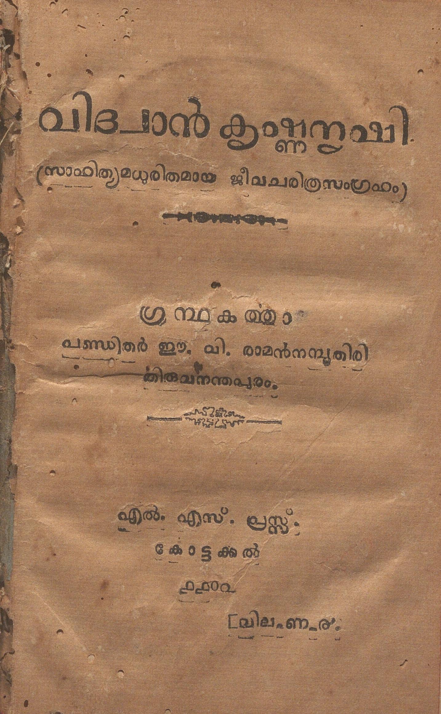 1927– ൽ പ്രസിദ്ധീകരിച്ച, ഈ.വി. രാമൻ നമ്പൂതിരി രചിച്ച വിദ്വാൻ കൃഷ്ണ്നൃഷി എന്ന പുസ്തകത്തിൻ്റെ സ്കാൻ ആണ് ഈ പോസ്റ്റിലൂടെ പങ്കു വെക്കുന്നത്.