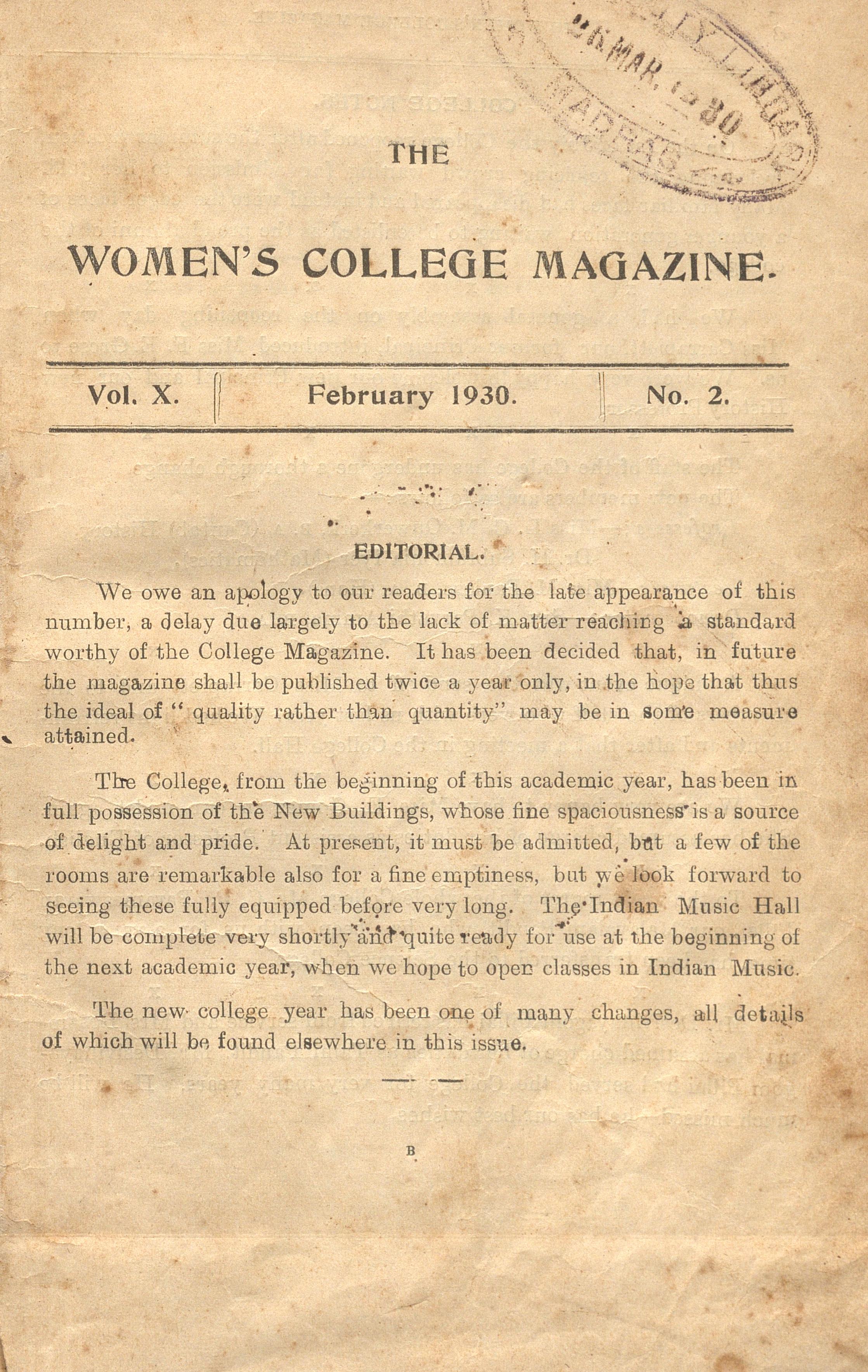 Through this post we are releasing the scan of The Women’s College Magazine Trivandrum Vol.X February Issue II published in the year 1930