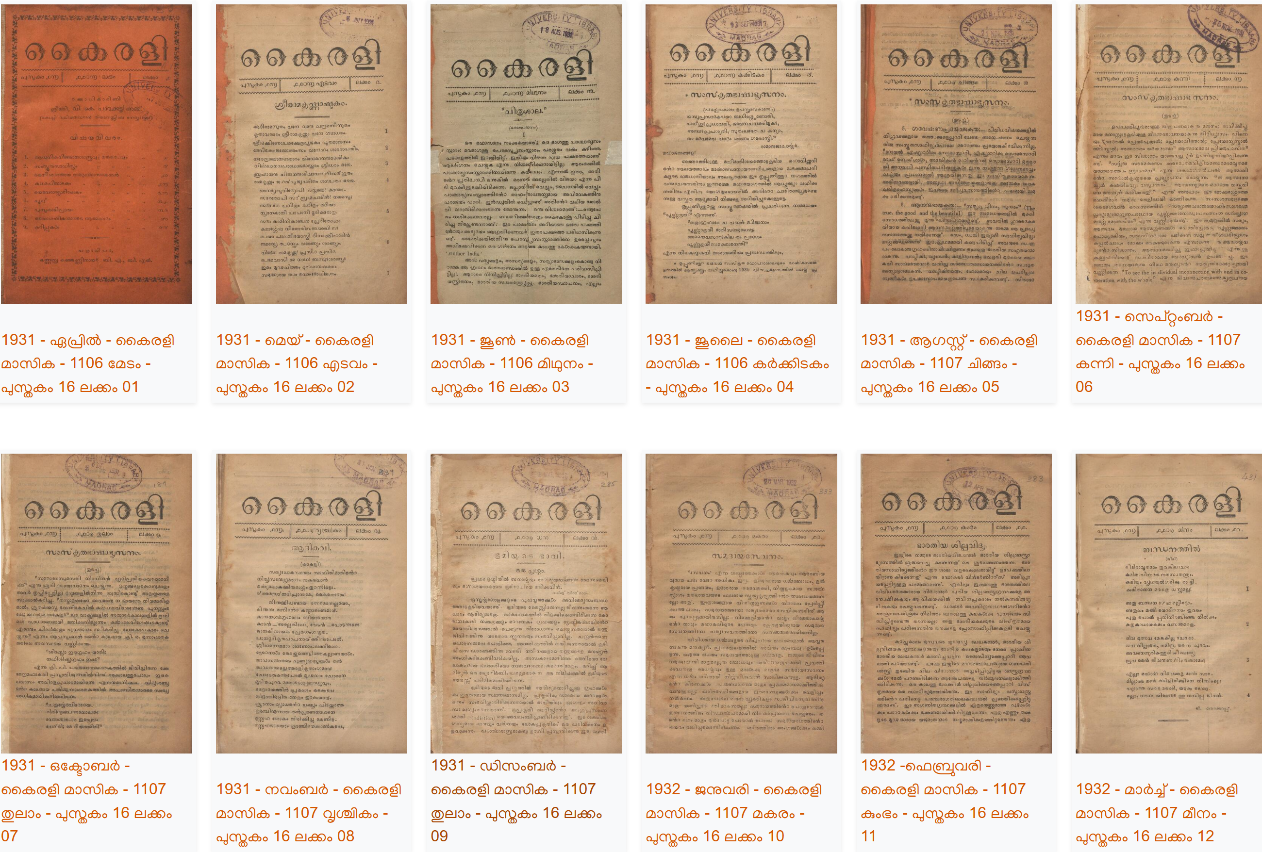 1931-32 വർഷങ്ങളിൽ പ്രസിദ്ധീകരിച്ച, കൈരളി മാസികയുടെ ലഭ്യമായ പന്ത്രണ്ടു ലക്കങ്ങളുടെ ഡിജിറ്റൽ സ്കാൻ ആണ് ഈ പോസ്റ്റിലൂടെ പങ്കു വെക്കുന്നത്