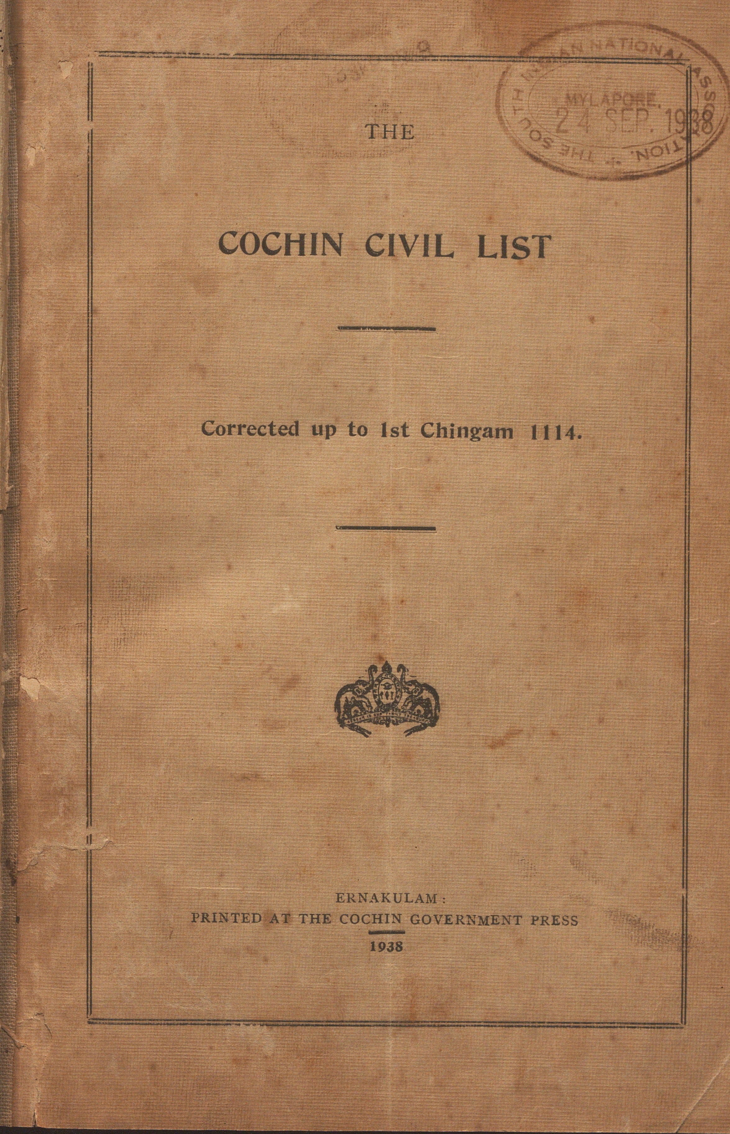 Through this post we are releasing the scan of The Cochin Civil List published in the year 1938