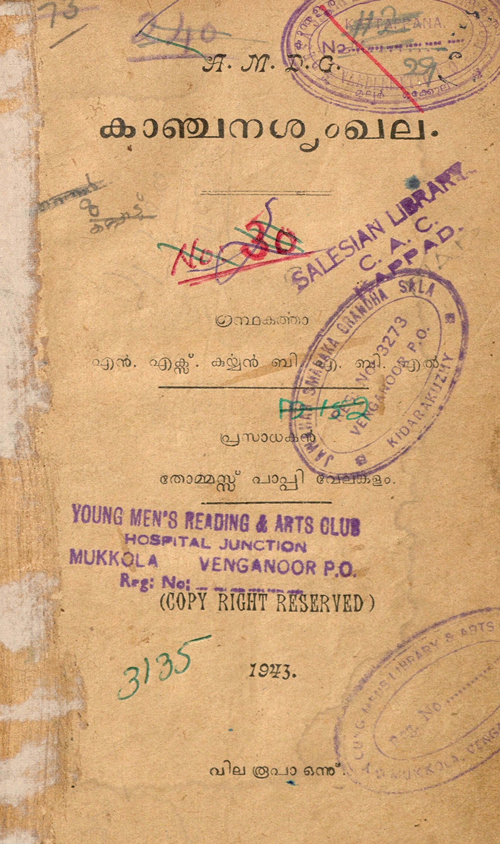 1943-ൽ പ്രസിദ്ധീകരിച്ച, എൻ.എക്സ്. കുര്യൻ എഴുതിയ കാഞ്ചനശൃംഗല എന്ന പുസ്തകത്തിൻ്റെ ഡിജിറ്റൽ സ്കാൻ ആണ് ഈ പോസ്റ്റിലൂടെ പങ്കു വെക്കുന്നത്