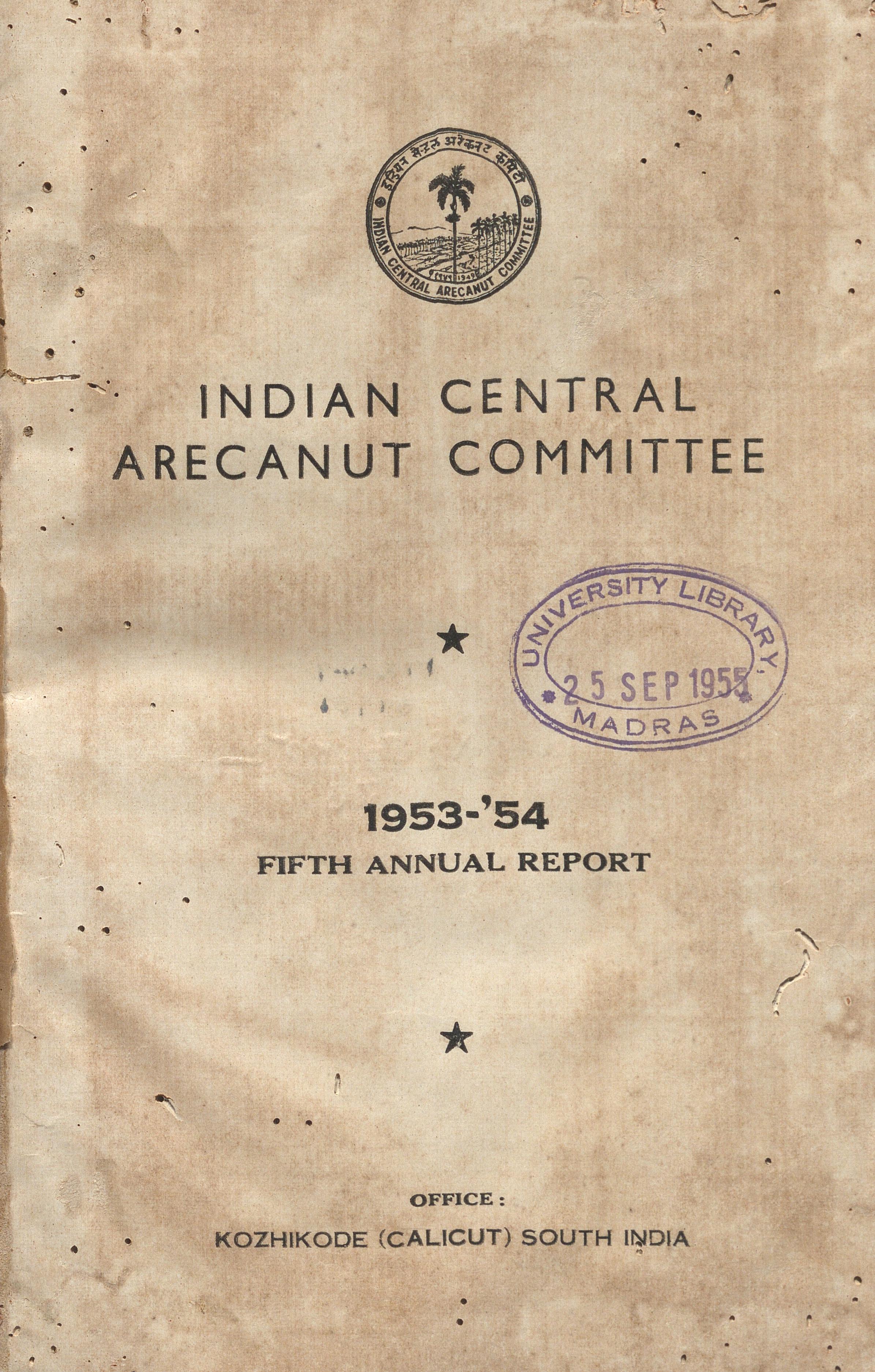 The Fifth Annual Report (1953-54) of the Indian Central Arecanut Committee is a valuable historical document that captures the early post-independence efforts to organize, regulate, and strengthen India’s arecanut sector. Published from Kozhikode, the report reflects a period when agricultural policy, research and cocperative marketing were gaining national importance