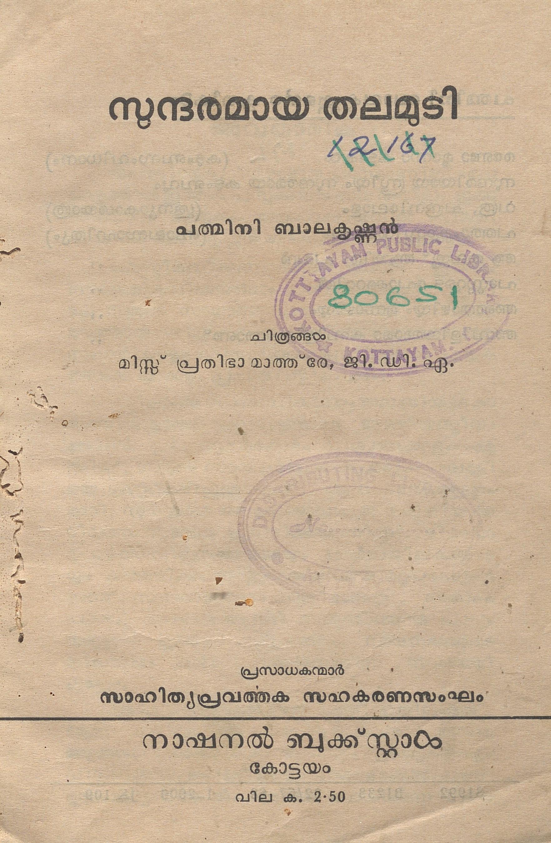 1967-ൽ പ്രസിദ്ധീകരിച്ച, പദ്മിനി ബാലകൃഷ്ണൻ എഴുതിയ സുന്ദരമായ തലമുടി എന്ന പുസ്തകത്തിൻ്റെ ഡിജിറ്റൽ സ്കാൻ ആണ് ഈ പോസ്റ്റിലൂടെ പങ്കു വെക്കുന്നത്