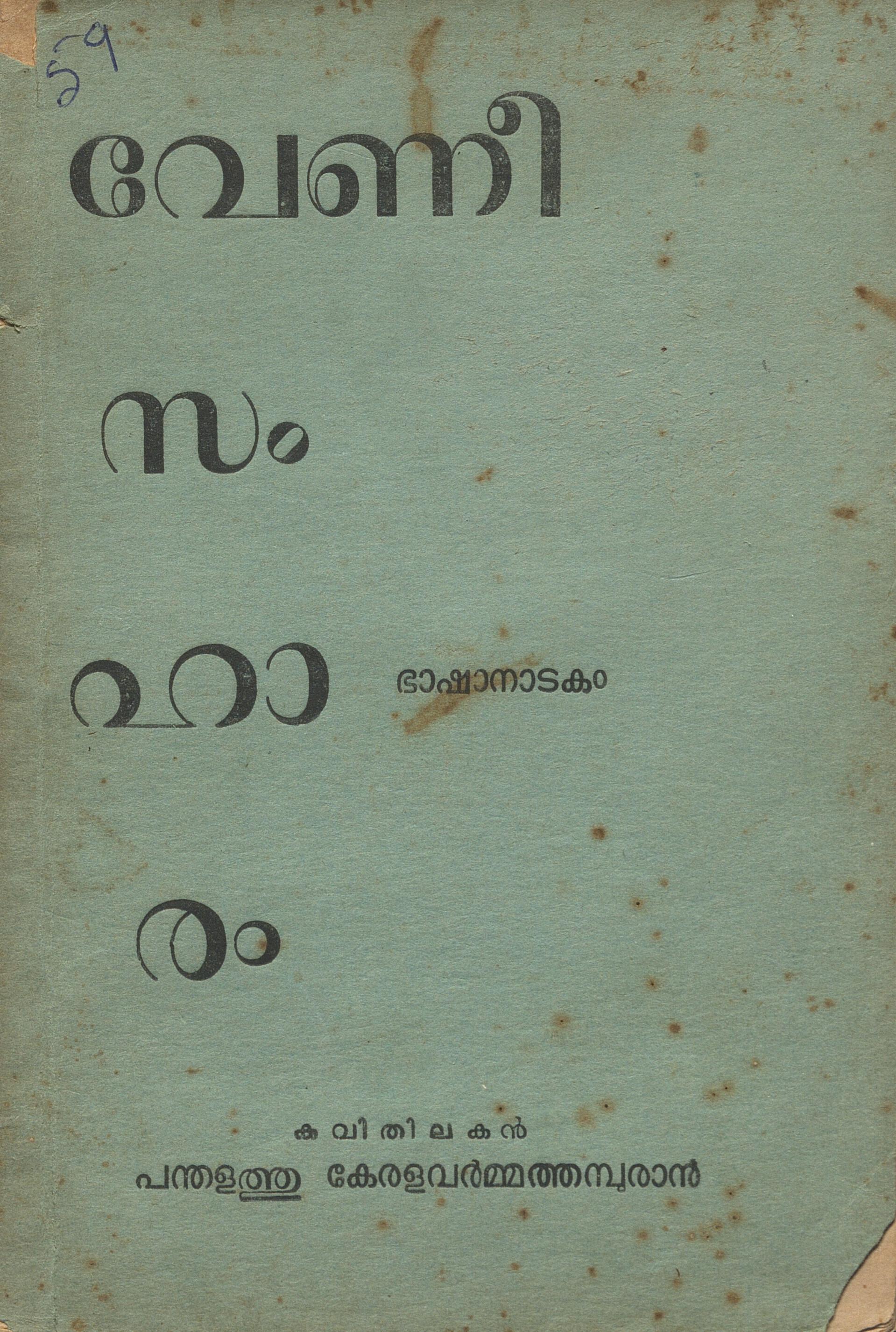 1969-ൽ പ്രസിദ്ധീകരിച്ച, പന്തളത്തു കേരളവർമ്മ തമ്പുരാൻ എഴുതിയ വേണീസംഹാരം എന്ന പുസ്തകത്തിൻ്റെ ഡിജിറ്റൽ സ്കാൻ ആണ് ഈ പോസ്റ്റിലൂടെ പങ്കു വെക്കുന്നത്