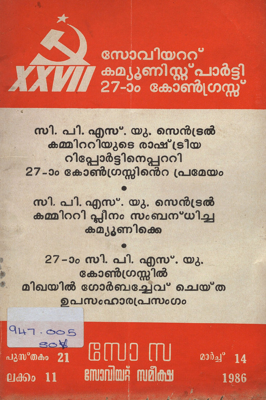1986 - മാർച്ച് 14 - സോവിയറ്റ് സമീക്ഷ - പുസ്തകം 21-ലക്കം 11