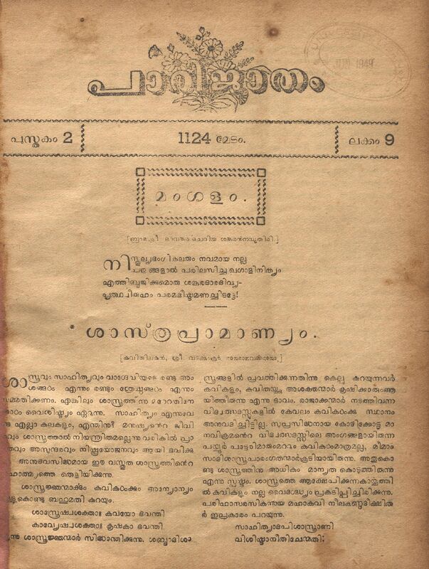 1949 - പാരിജാതം മാസിക - 1124 മേടം (1949 ഏപ്രിൽ) - പുസ്തകം 02 ലക്കം 09