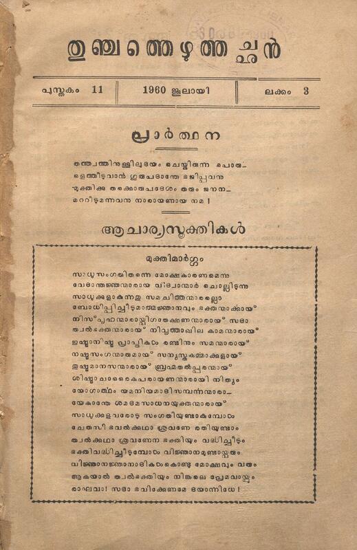1960 - തുഞ്ചത്തെഴുത്തച്ഛൻ - ജൂലായ് - പുസ്തകം 11 - ലക്കം 03