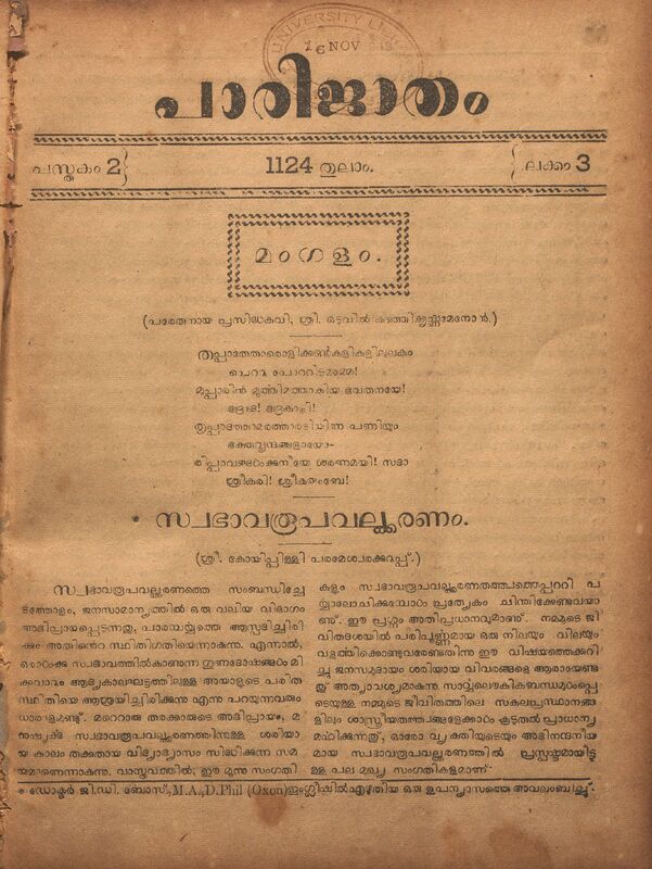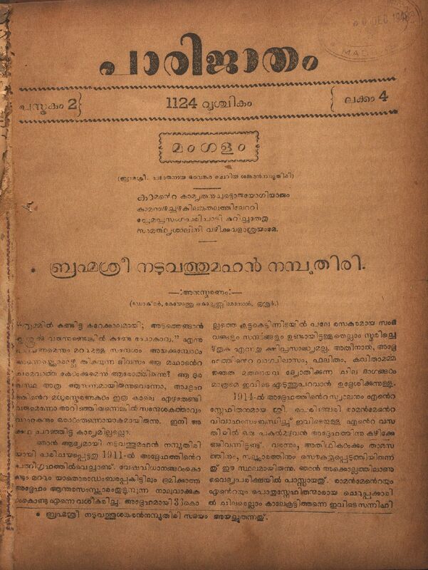1948 - പാരിജാതം മാസിക - 1124 വൃശ്ചികം (1948 നവംബർ) - പുസ്തകം 02 ലക്കം 04
