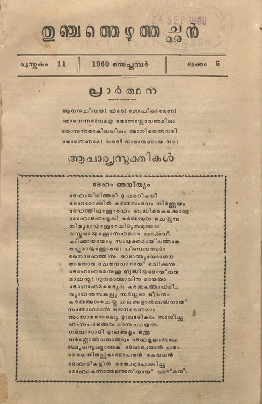 1960 - സെപ്തംബർ - തുഞ്ചത്തെഴുത്തച്ഛൻ - പുസ്തകം 11 - ലക്കം 05