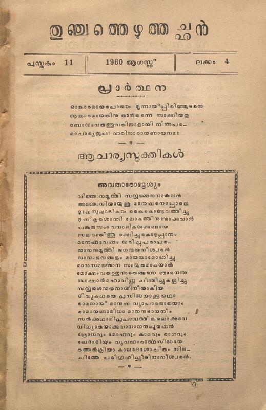 1960 - ആഗസ്റ്റ് - തുഞ്ചത്തെഴുത്തച്ഛൻ - പുസ്തകം 11 - ലക്കം 4