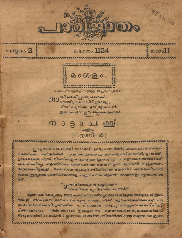 1949 - പാരിജാതം മാസിക - 1124 കർക്കടകം (1949 ജൂലൈ) - പുസ്തകം 02 ലക്കം 12