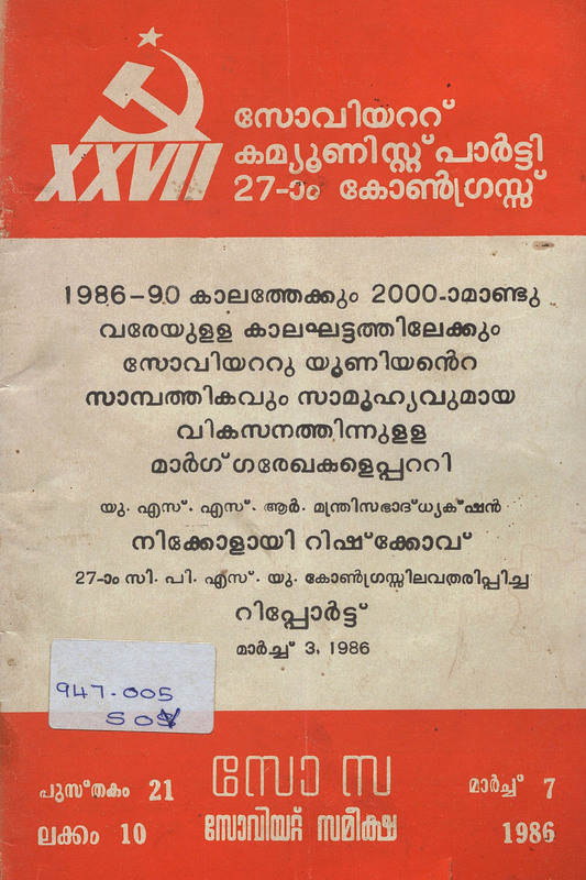 1986 മാർച്ച് 07 - സോവിയറ്റു സമീക്ഷ – പുസ്തകം 21- ലക്കം 10