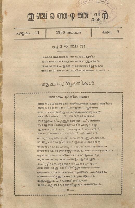 1960 - നവംബർ - തുഞ്ചത്തെഴുത്തച്ഛൻ - പുസ്തകം 11 - ലക്കം 07