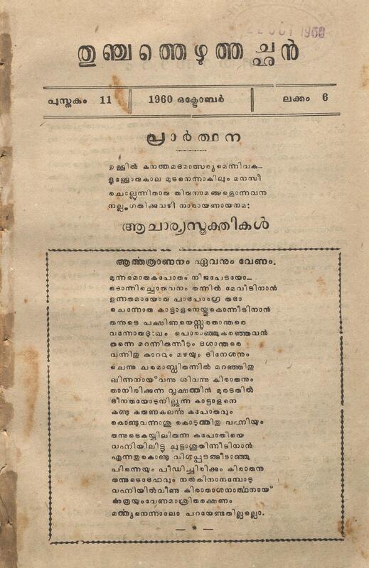 1960 - ഒക്ടോബർ - തുഞ്ചത്തെഴുത്തച്ഛൻ - പുസ്തകം 11 - ലക്കം 06