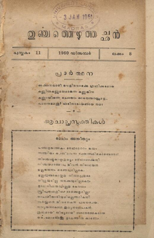 1960 - ഡിസംബർ - തുഞ്ചത്തെഴുത്തച്ഛൻ - പുസ്തകം 11 - ലക്കം 08