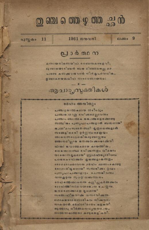 1961 - ജനുവരി - തുഞ്ചത്തെഴുത്തച്ഛൻ - പുസ്തകം 11 - ലക്കം 09