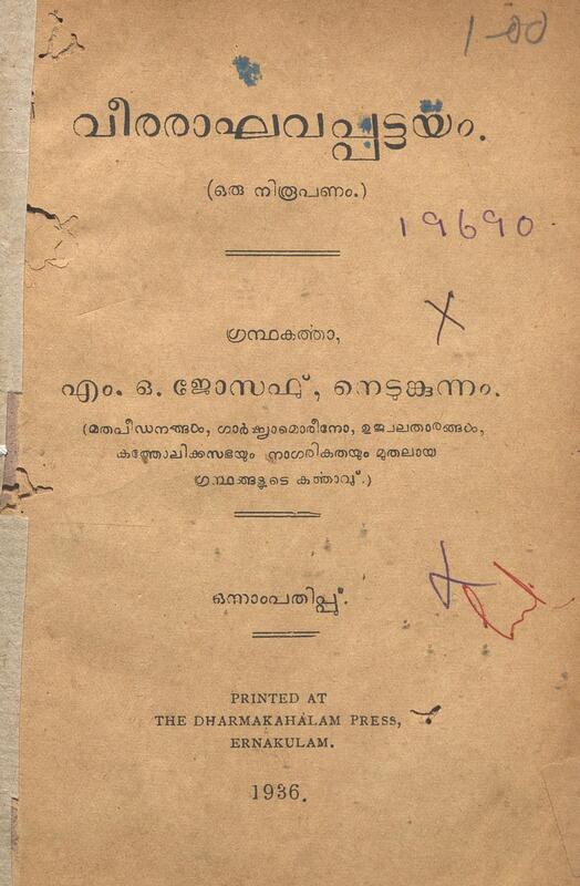 1936 - വീരരാഘവപ്പട്ടയം - എം.ഒ. ജോസഫ് നെടുംകുന്നം