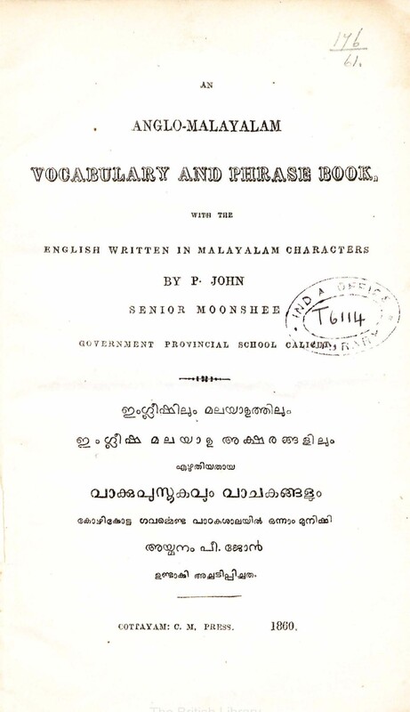 1860 An Anglo Malayalam Vocabulary And Phrase Book Aymanam P John