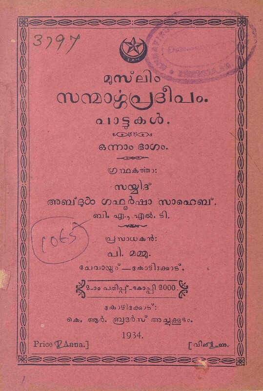 1934 - മുസ്ലിം സന്മാർഗ്ഗപ്രദീപം പാട്ടുകൾ - സയ്യിദ് അബ്ദുൾഗഫൂർഷാ സാഹെബ്