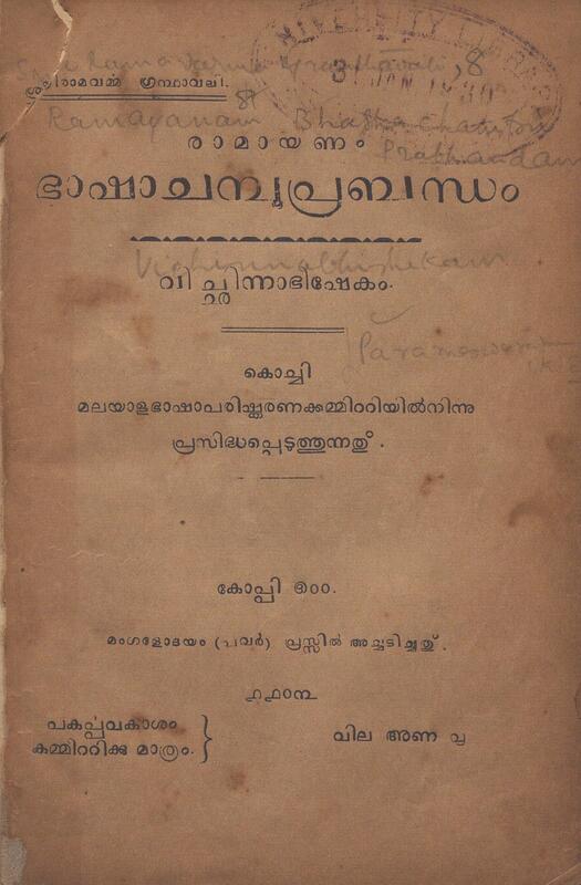 1928 - രാമായണം - ഭാഷാചമ്പൂപ്രബന്ധം - വിച്ഛിന്നാഭിഷേകം - പുനം നമ്പൂതിരി