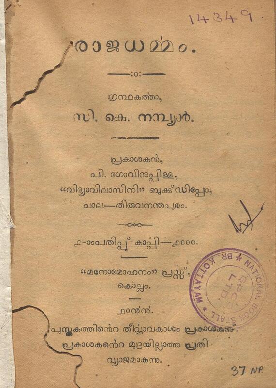 1924 - രാജധർമ്മം - സി.കെ. നമ്പ്യാർ