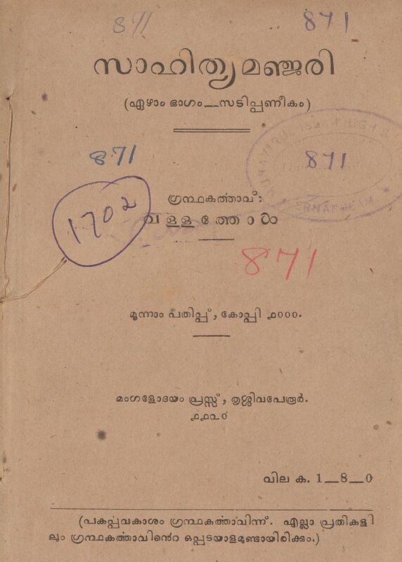 1945 - സാഹിത്യമഞ്ജരി ഏഴാം ഭാഗം - വള്ളത്തോൾ