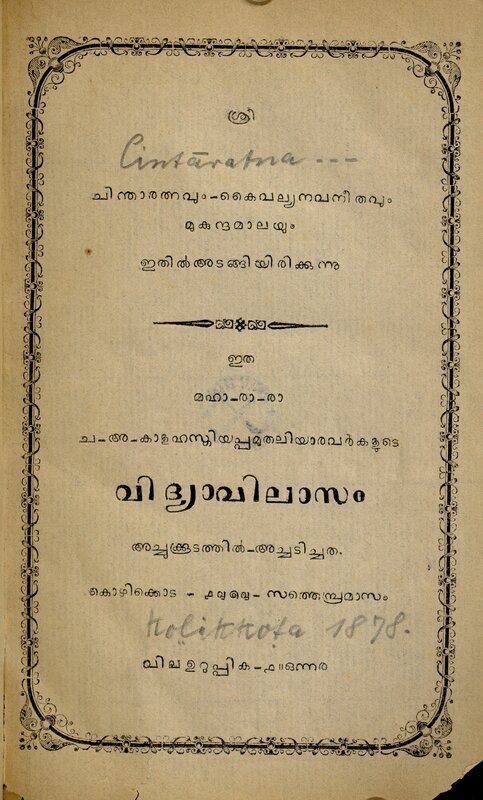 1878 - തുഞ്ചത്തെഴുത്തച്ഛൻ്റെ ചിന്താരത്നവും, കൈവല്യനവനീതവും മുകുന്ദമാലയും