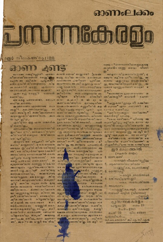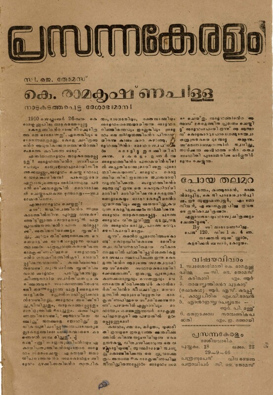 1946 – പ്രസന്നകേരളം – പുസ്തകം 18 ലക്കം 22 (1946 സെപ്റ്റംബർ 29)
