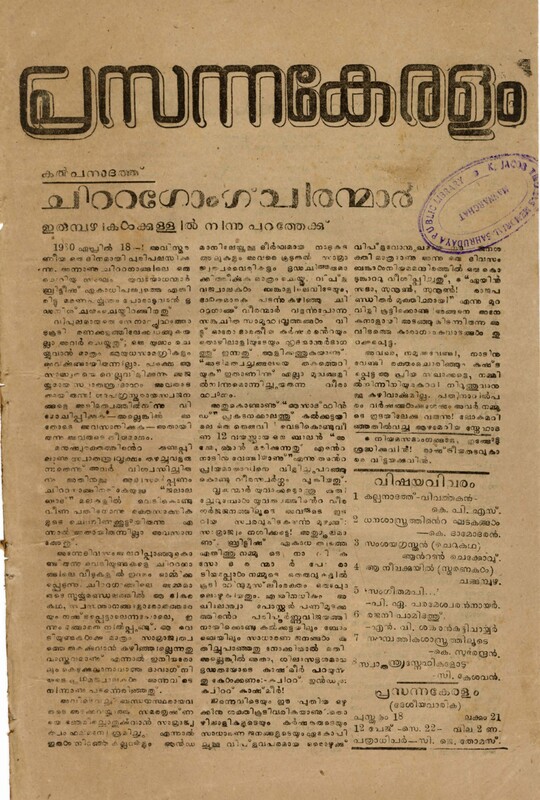 1946 – പ്രസന്നകേരളം – പുസ്തകം 18 ലക്കം 21 (1946 സെപ്റ്റംബർ 22)