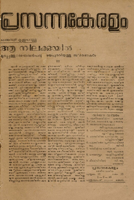 1946 – പ്രസന്നകേരളം – പുസ്തകം 18 ലക്കം 18 (1946 സെപ്റ്റംബർ 1)