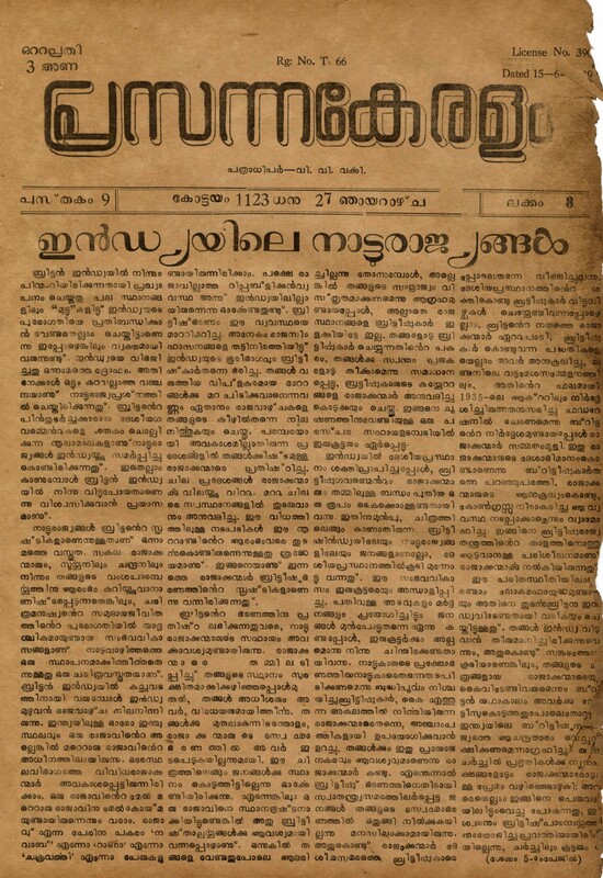 1947 – പ്രസന്നകേരളം – പുസ്തകം 9 ലക്കം 1 (1947 ഡിസംബർ 28)