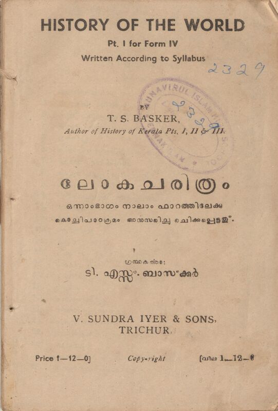 ലോകചരിത്രം ഒന്നാം ഭാഗം നാലാം ഫാറം