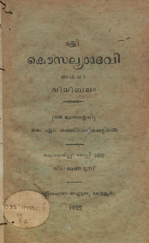 1922 - ശ്രീ കൗസല്യാദേവി അഥവാ വിധിബലം - കെ.എം. കുഞ്ഞിലക്ഷ്മിക്കെട്ടിലമ്മ