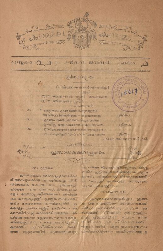 1923 - ഡിസംബർ- കർമ്മെലകുസുമം - പുസ്തകം ലക്കം 21 ലക്കം 12