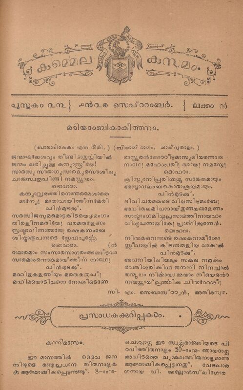 1924 - സെപ്തംബർ - കർമ്മെലകുസുമം - പുസ്തകം ലക്കം 22 ലക്കം 09
