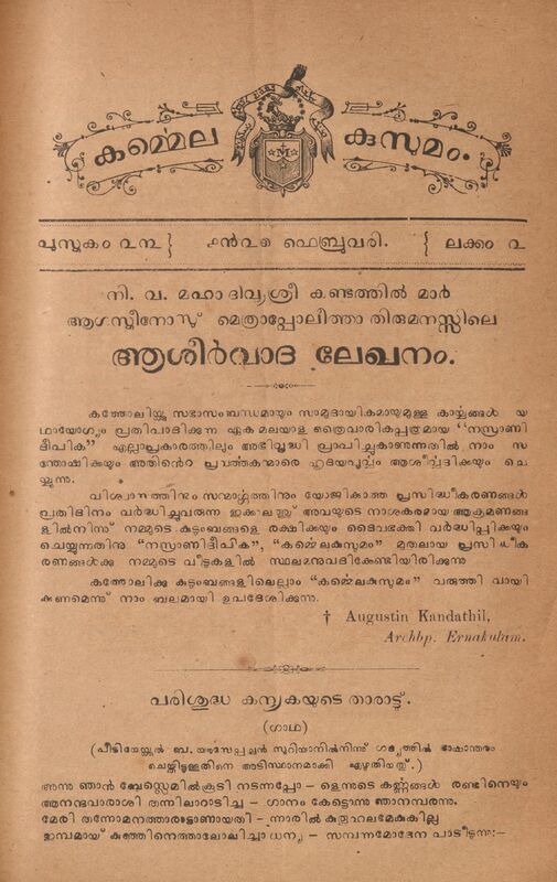 1924 - ഫെബ്രുവരി - കർമ്മെലകുസുമം - പുസ്തകം ലക്കം 22 ലക്കം 02