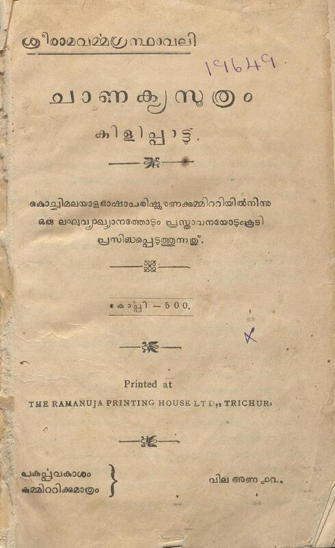 1925 - ചാണക്യസൂത്രം കിളിപ്പാട്ട് - അജ്ഞാത കർതൃകം