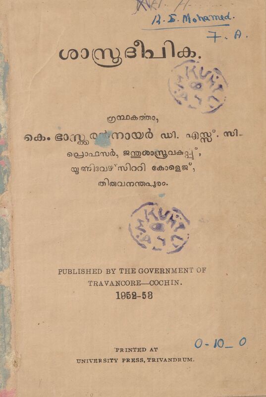 1952 - ശാസ്ത്രദീപിക - കെ. ഭാസ്കരൻ നായർ