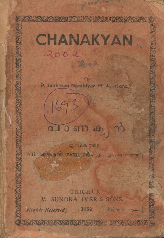 1952 - ചാണക്യൻ - പി. ശങ്കരൻ നമ്പ്യാർ