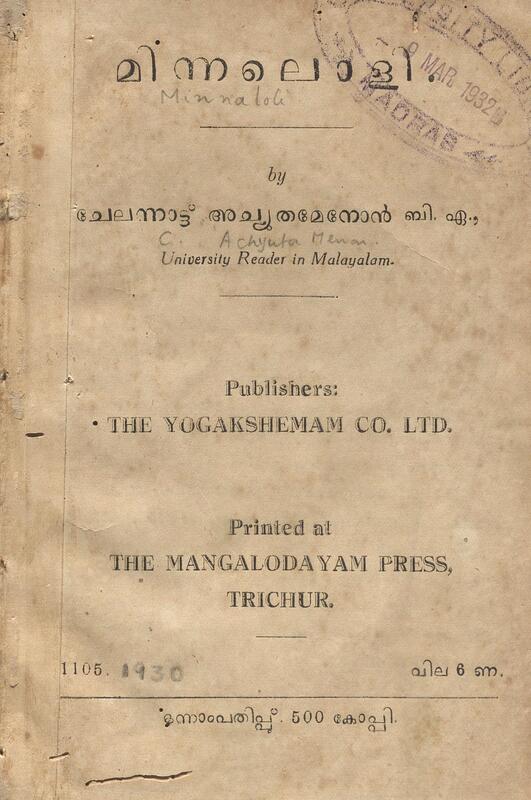 1930 - മിന്നലൊളി - ചേലന്നാട്ട് അച്യുതമേനോൻ
