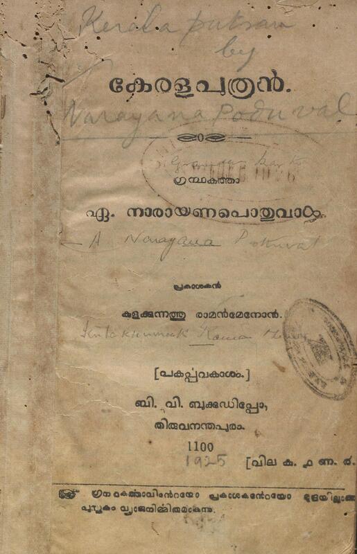 1925 - കേരളപുത്രൻ - ഏ. നാരായണപൊതുവാൾ