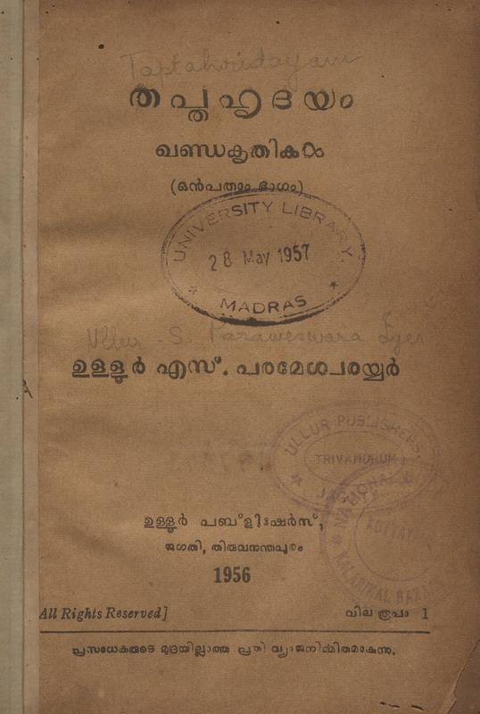 1956 - തപ്തഹൃദയം - ഉള്ളൂർ എസ്. പരമേശ്വരയ്യർ