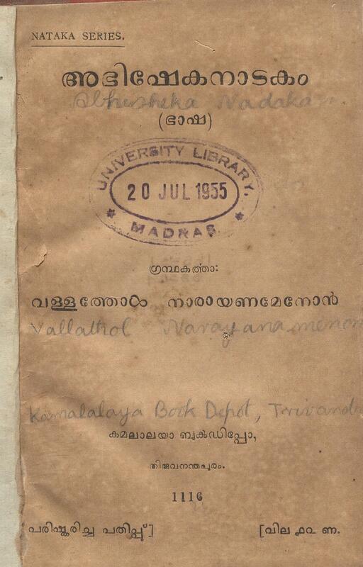 1941 - അഭിഷേകനാടകം - വള്ളത്തോൾ നാരായണമേനോൻ