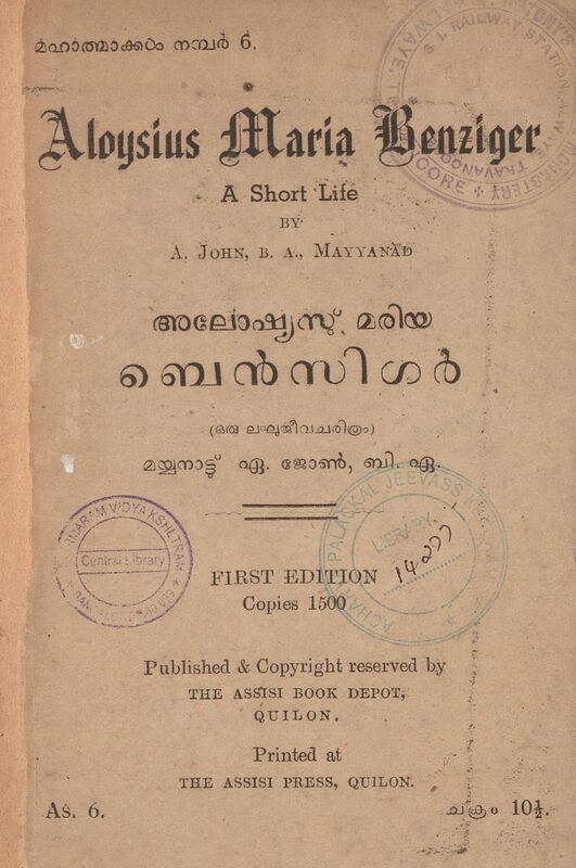 1942 - അലോഷ്യസ് മരിയ ബെൻസിഗർ