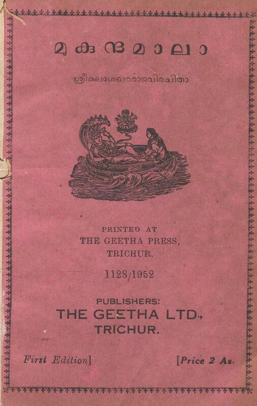 1952- മുകുന്ദമാലാ - കുലശേഖരരാജ